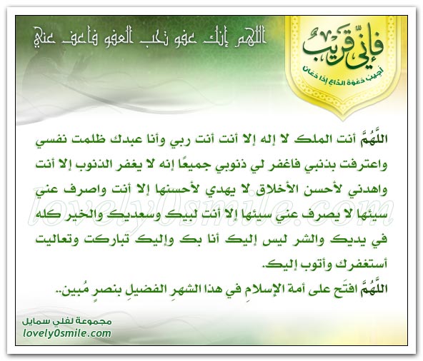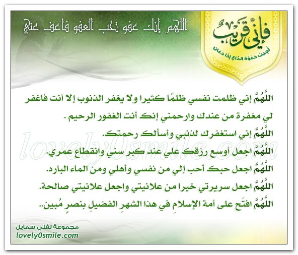 اللهم يا حنان يا منان يا واســـع الغفران أغفــر لموتانا وموتى المسلمين وأرحمهم وعافهم وأعف عنهم وأكرم نُزلهم ووسع مدخلهم وأغسلهم بالماء والثلج والبرد ونقهم من الذنوب والخطايا كما ينقى الثوب الأبيضُ من الدنس.