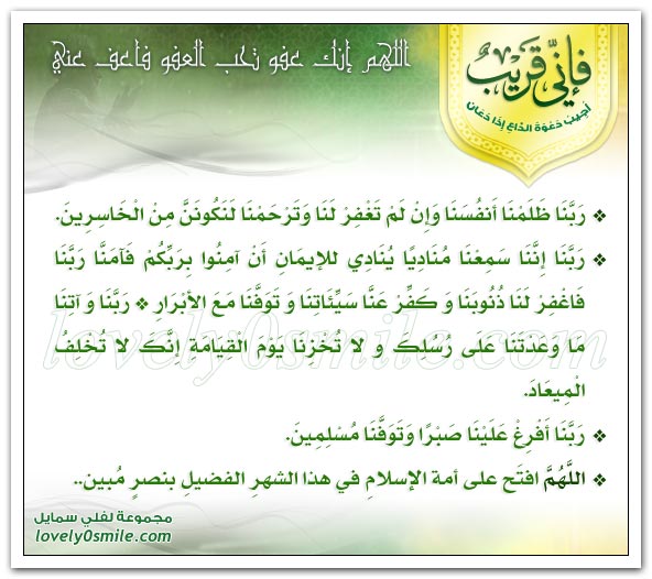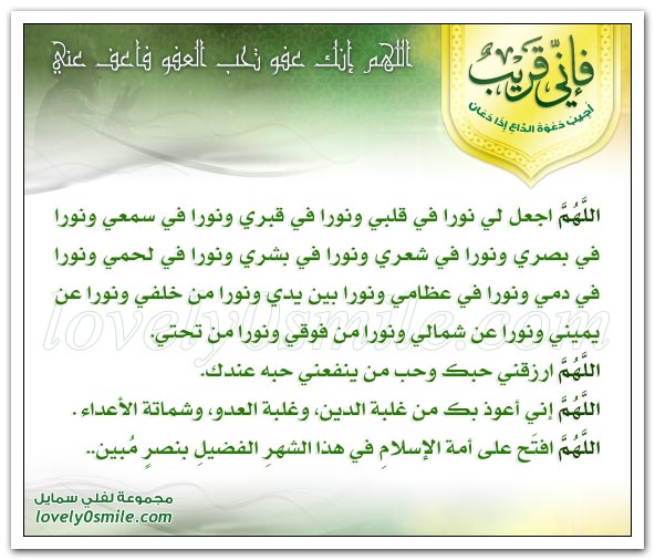 القلب المفتوح New member إنضم 2008/07/18 المشاركات 2,466 2008/09/09 #128 ادعيه في هيئة بطاقات ارجوا ان تنال اعجابكم